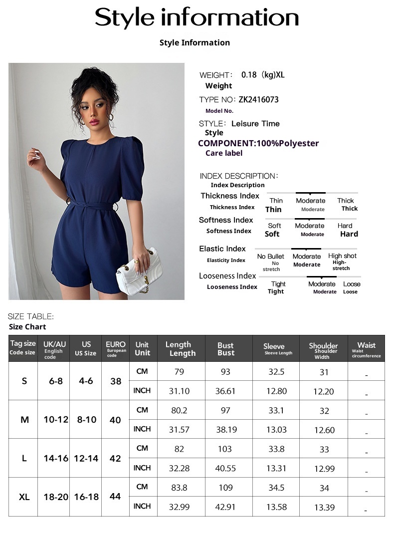 Women's Puff Sleeve Solid Color One Piece Shorts