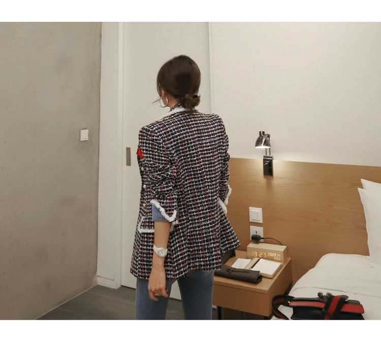 Women's Slim Fit Long Sleeve Tweed Short Coat